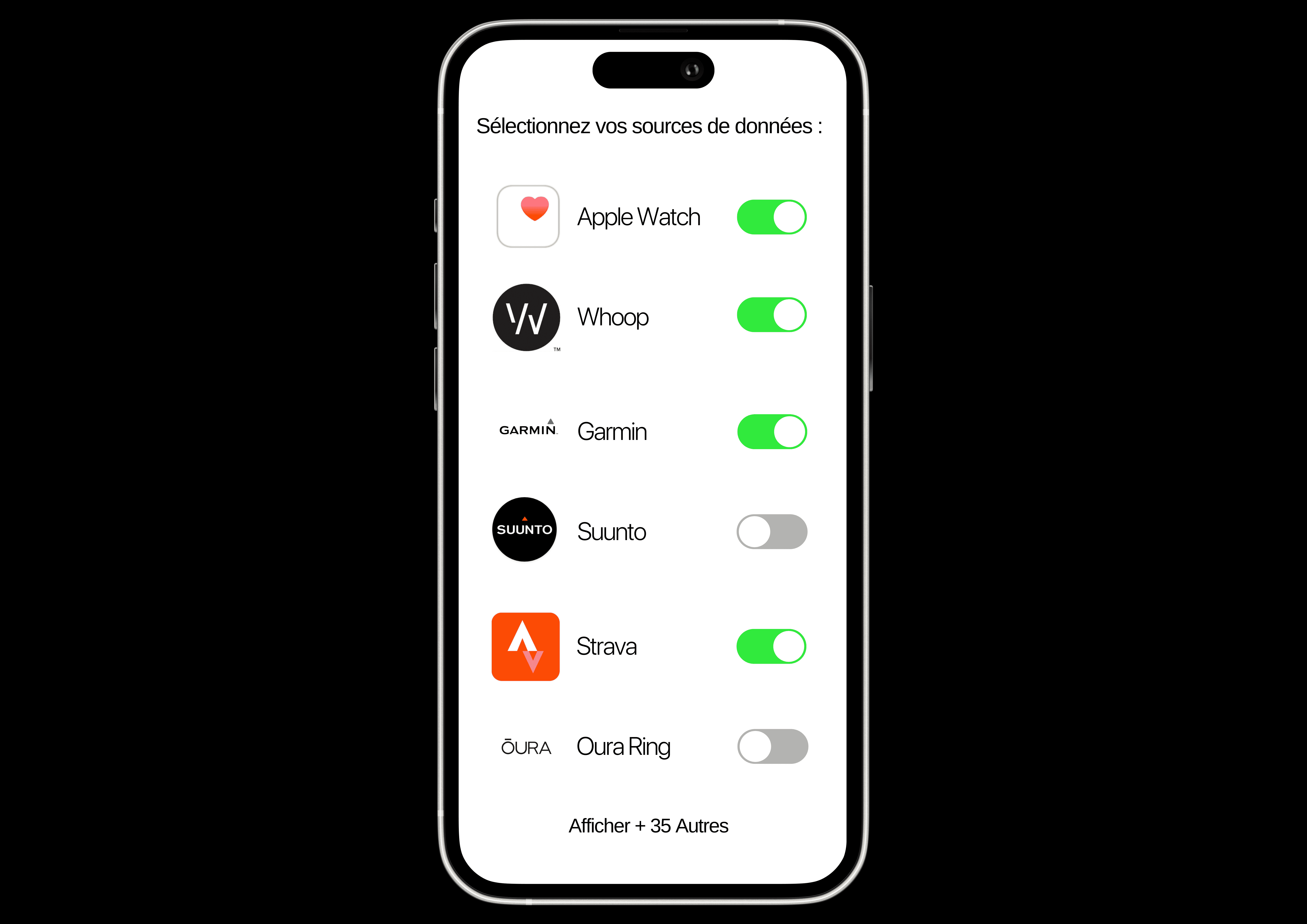 Connectez votre Strava, Apple Watch, Suunto, Garmin, etc. But : connaître vos biomarqueurs, vos performances et vos autres données clés. Sans wearable ? ORA fonctionne aussi sans.
